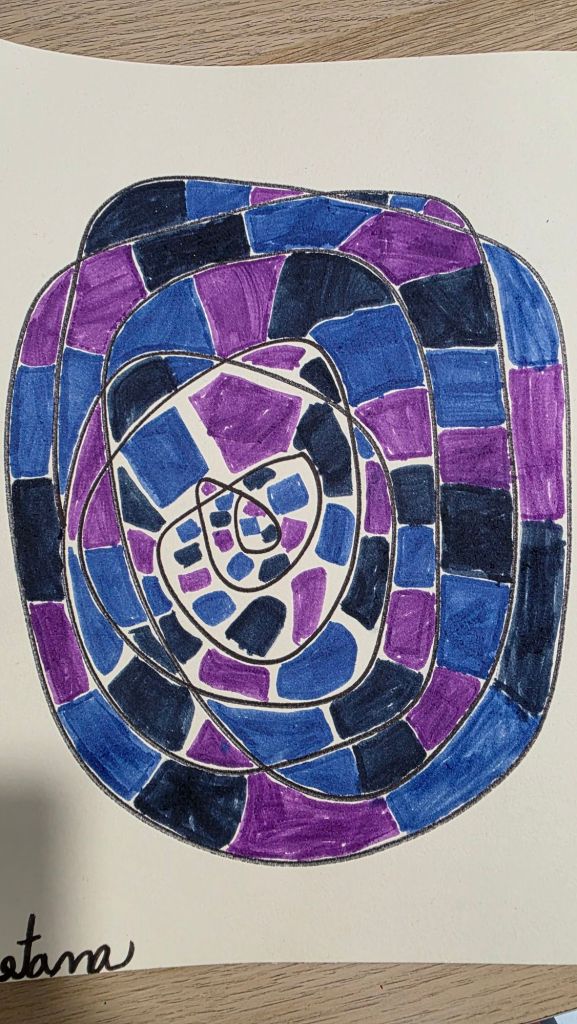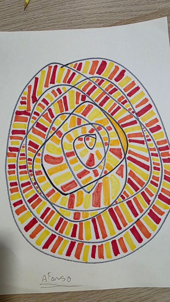 O objetivo principal da atividade foi fomentar a concentração e o foco durante a produção artística. Ao trabalhar a repetição, o preenchimento cuidadoso dos espaços e a continuidade da forma, os artistas exercitam a permanência na tarefa, a organização interna e a escuta do próprio tempo.